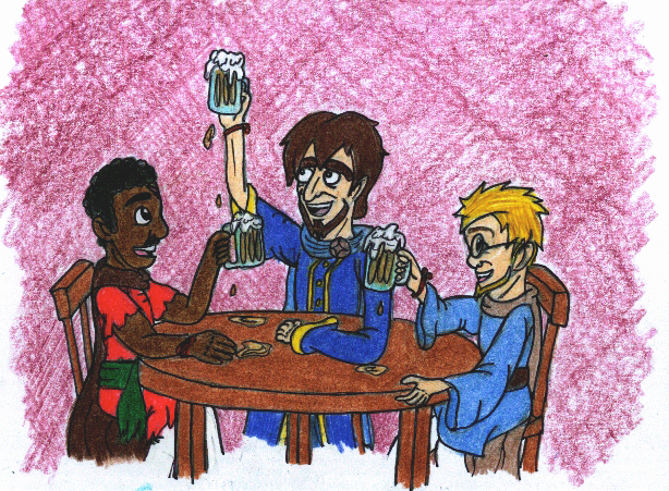 oh my gosh! this is amazing! you made them look like real people and so much action and fun! I seriously can just hear everyone in the bar! ^^
