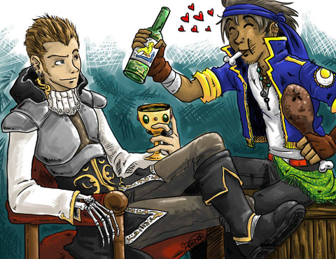 For Sarshin, of the Zelda Exchange.An AU-(Adult)Link and Linebeck go drinking in the Mercay Milk Bar.