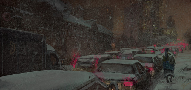 Мне нравится как передана атмосфера мокрого снега - похоже на фото.