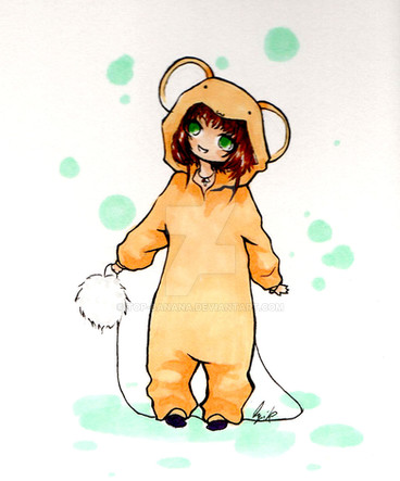 Sakura and Kero-chan from Cardcaptor Sakura, having fun cosplaying. Well, Sakura's enjoying herself at least. ^_~