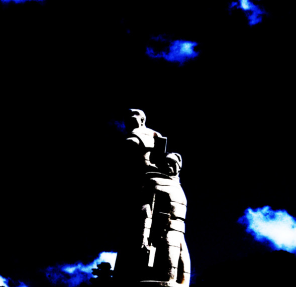 i love the scruffy look, but im not feeling the blue though. try just black and white or a lighter color maybe? just a personal opinion though.