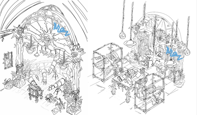 More work from school, I'm really proud of this though??? I've always wanted to get better at location design and I'm really happy with how this came out (Though I will admit the right side was rushed to get this handed in hhhh)I might make a lil pixel scene out of this for Cronus o0o It was so much fun adding in lil easter eggs to his character for this too-