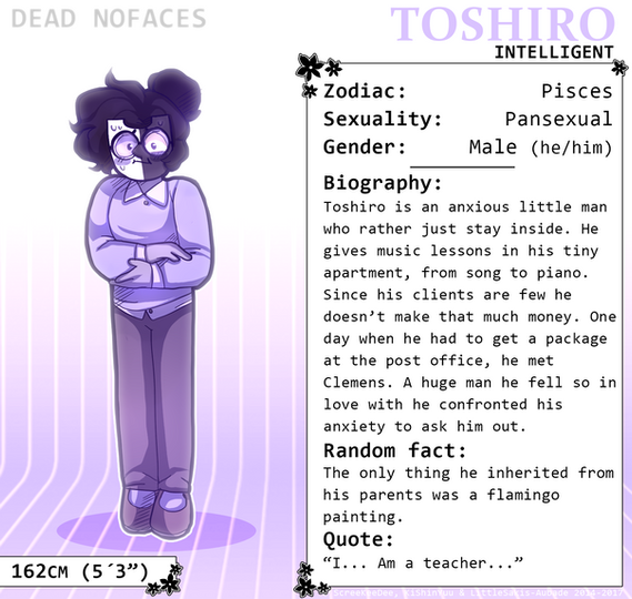 There's a bit more info on him and the main characters on my TH, but due to his design having been somewhat copied in the past, all of their profiles can only been seen by logged in users ;w; Sorry guys-