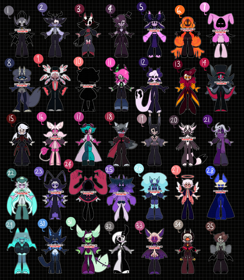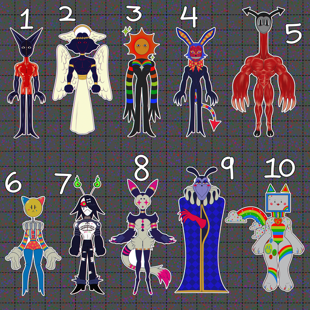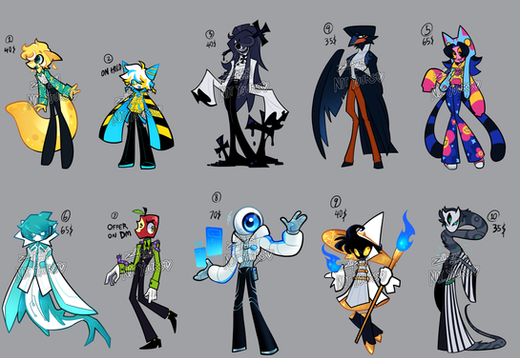 EDIT: Decided to grey out the ones that are unavailable, might start doing this with all my adopts. Also number 10 now has a new design!!Thought it was about time to make a batch like this!! A lot of my adopts are still up for offers, and this is a lot easier that spamming y'alls inbox with 10 different batches pffft-