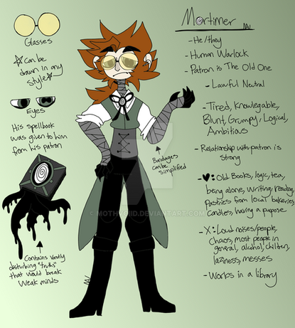 But here we are again, another warlock and yet DnD PC with no game. But, at least this boi is gonna show up as an NPC for a game I'm DMing o0o I'm super excited to throw him at my players hhhh- He was also basically instantly made as soon as I heard about the new UA warlock class. It looked like so much fun and he was just such a fun concept to work with- I've tossed a lot of villains I love into him.
