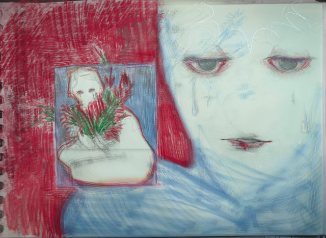 Those are beautiful flowers! I'm not much of a painter so I assume it would be difficult to get rid of that white outline around the subject without ruining the drawing, but I feel like the piece would be stronger without it. Mostly because I feel like your choices of color are well picked and would blend nicely together, and the break between color makes that not as clear. Still a very nice painting, keep up the good work!