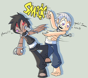 nice pic if that happened to me my life would be cool^^!!!i could do that to u but i would need another demon ono my side...O_Oon second thought never mind,being controled by a puppet being controled by a rag doll would be cool not beoing controlled by a puppet being controlled by a demon-_-...o-oi just noticed somthing... wat that the guy who createed this pic calls him self shadow, like me !!!-_-