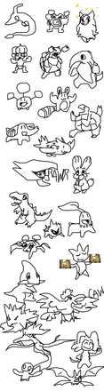 -Gill the mudkip by ~giratina84 , The green riolu and the shape in the corner by ~Toko-Wildheart , Gloomba, Hyper Goomba, and Chuckolater were linearted (i made up a word |D) by me, and they were colored by ~NeoTornado . I also doodled Mewka and Dark on the side and neo colored it but i didn't screencap that -w-;;