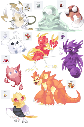 -Chain Chomp in the corner by ~Wild-Wolf-Lilly , Sandshrew by *thunderwarriors , Purple eye by ~Toko-Wildheart , lineless Rossi (i think that's her name, i forget |D) by :devcheezllama: I forget who drew the green butterfly -w-;;;