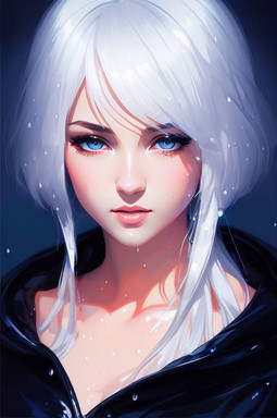 #ai #anime #blue #eyes #grey #hair #painting #portrait #rain #raincoat