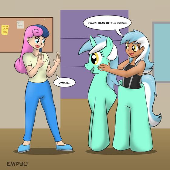 The original submission wasn't colored. Drawing 3 ponies and adding dialogue in 30 minutes was already pushing it.Related content