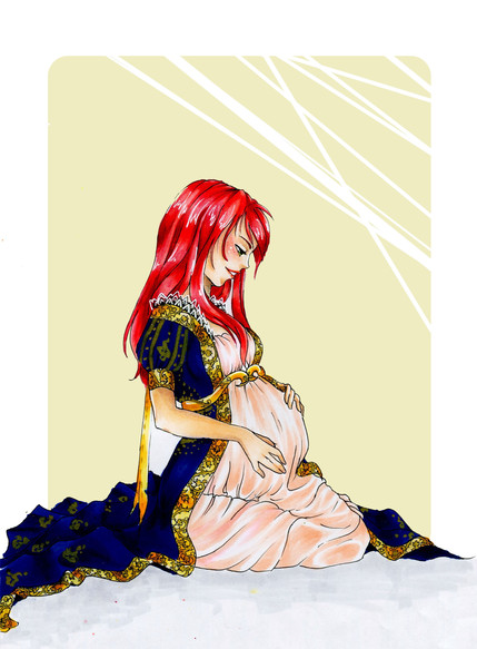 I'm finally starting to feel a bit proud of my pictures. But I still think I have a lot to learn, like making backgrounds for example.Anyway, this picture is of Ara (Aoi's mother) when she was pregnant with Aoi. I wanted to capture the magic and feeling of being blessed that I think belongs to pregnancy, and show how happy she is to become a mother.