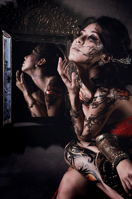 Lovely....a very 'classy' portrait, Cherry glows incandescently alongside the dark, plush surroundings...a beautiful capture.