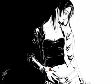 Of course, I wouldn't be able to get her anathomy and some perspective shortcuts right without a help of Poser^^ But everything else except some basic outlines is all genuine work.