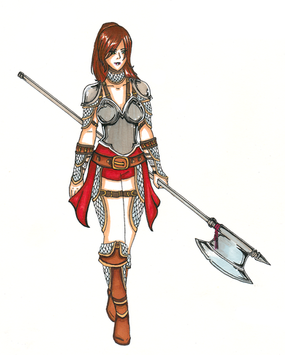 Created last night. Inspired by Little Red Riding Hood and the Woodsman, but as I developed her character, she's also drawing inspiration from characters such as the Redcrosse Knight, and some Greek mythology.I'll have to draw her girlfriend next--a sorceress inspired by Ariadne and Alice in Wonderland, among others.