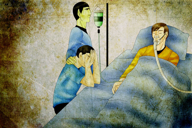I love and injured Spock, makes me want to hug him and make (oops) with him