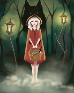 Most of the story has red riding hood themes, but it's just one of the many fairytale elements of her story.