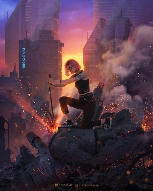 This cyberpunk-themed artwork draws great inspiration from the visuals of Blade Runner, Cyberpunk 2077, Alita Battle Angel, and Ghost in the Shell to create a dark dystopian future, and brightly lit with neon signs, and humans with cybernetic enhancements. I was always skeptical if I could pull off the complexity of the sci-fi world-building, so I have been steering away from creating one. But I mustered up courage to finally try one. Hope its somewhat decent and you like it.If you are interested in watching the creation process of this photo manipulation/artwork, you can head over to my YouTube channel (Encreate) for the entire breakdown - youtube.com/encreate
