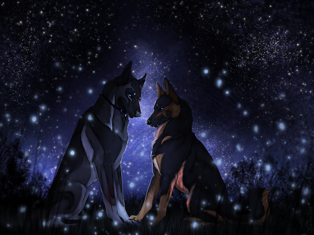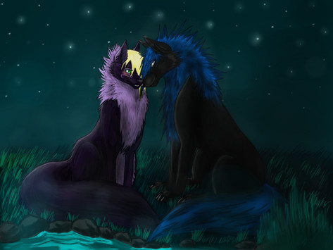 A longggg time ago juice1212 asked me to do art of us together, and I finally got around to doing it ^^ the black wolf is me and the red one is her :33Related content