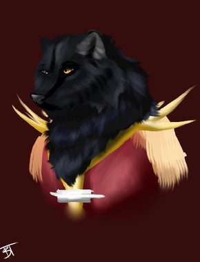 This is (obviously) a very nice piece, although there are a few things that could be tweaked. The face of the wolf is very well done painting wise, Β and the lighting all seems to be in the right face; however, the alignment of the anatomical structure in the face could use a bit of correction. On the left side of the face the cheek(?) to fur is indented in such a way it makes the face look slender and muscular, but on the right side of the face the wolf's cheek lacks such a strong indention and it makes the face look a bit off balance. The angle the wolf is facing should allow for some noticeable distortion, but finding the right amount can be a bit... hard. The mouth is perhaps a bit too elongated and looks slightly crooked when seen in comparison to the nose. The worn allows fur to be seen through it, which is a little odd being that the worn covers the spine of the animal and the sides. I would recommend maybe extending it up wards and giving it that yellow outline/lighting. The fur on the chest has an odd parting, but I think that occurs due to the chain-necklace. What I'd like to compliment you on is the excellent painting applied on the brow of the wolf as well as the ears. A lot of artist tend to overshoot when doing realistic fur, but I think you've really nailed it! Anyway, hopefully this was mildly helpful.Β