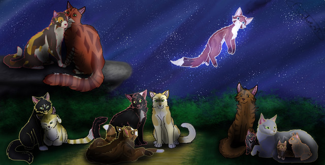 I'm currently drawing the "Mink, Lark, Owl and Wren approach the Wisteria at night" scene, so yeet ^.~ I've already drew my new OC, and I kind of planning to draw some of the new clan members.