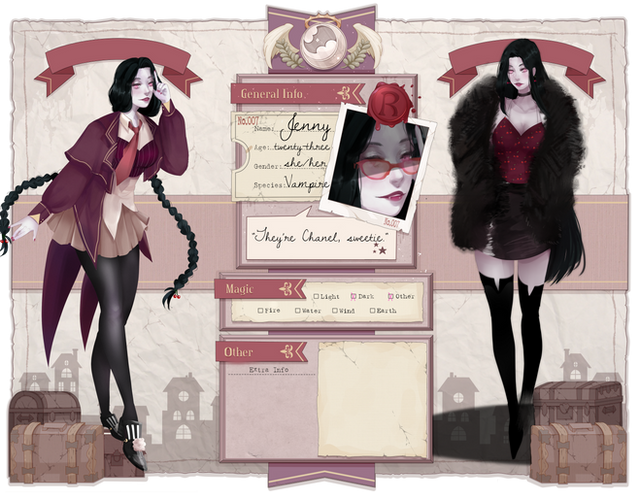 Jenny's spell 'Hi, Sweetie''Dark magic grips the opponent’s shadow and turns it into a spike to stab through them.'