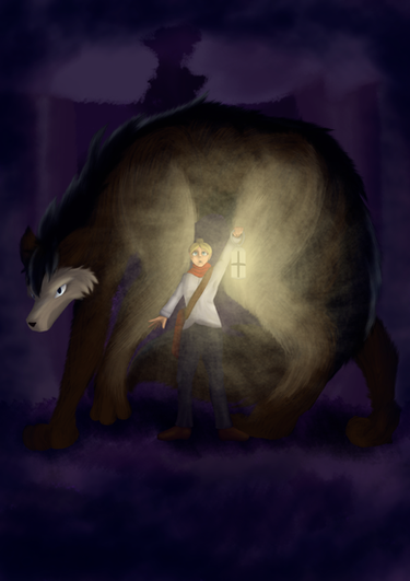 Wow, I like the wolf shadow in the background! ^^ It's very pretty. Toboe is so awsome. Nice job.