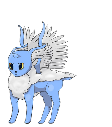 Aww its so cute, now i see why you wanted this one x33 To me it looks more like a Swablu evolution + eevee, but none the less its adorable and I love her, she looks all fluffy *hugs*