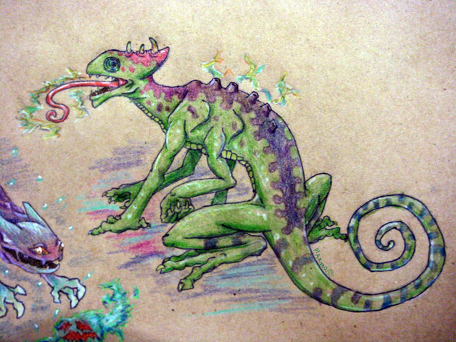 KECLEONS. I wanted to try this.. Maybe it's a little more segmented than I'd anticipated. I'll maybe try again sometime, or do a digital one. Little side goal X3Types: Normal, Fire, Dark, Poison, Water, Ice, Grass.