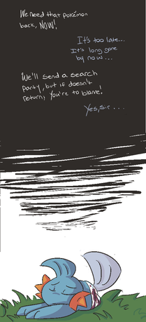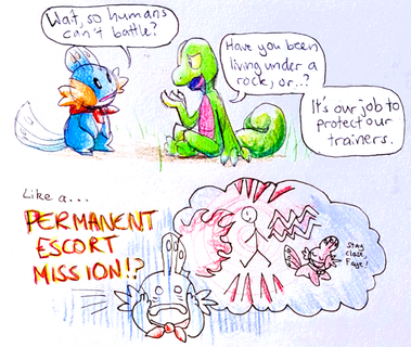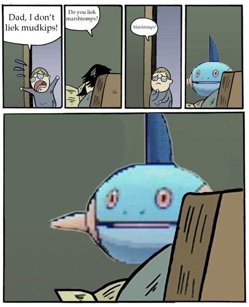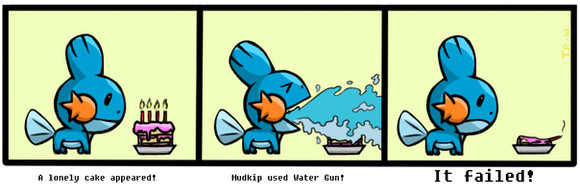 I don't play this game, and therefore have no idea what the joke is, but the expressions on this Mudkip are so funny, (especially that last panel!) that I'm going to favorite anyway.