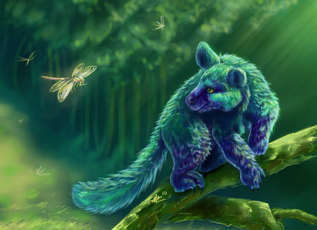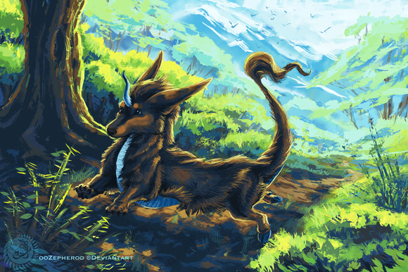 #canine #forest #leaves #moss #nym #trees #winged #alecani