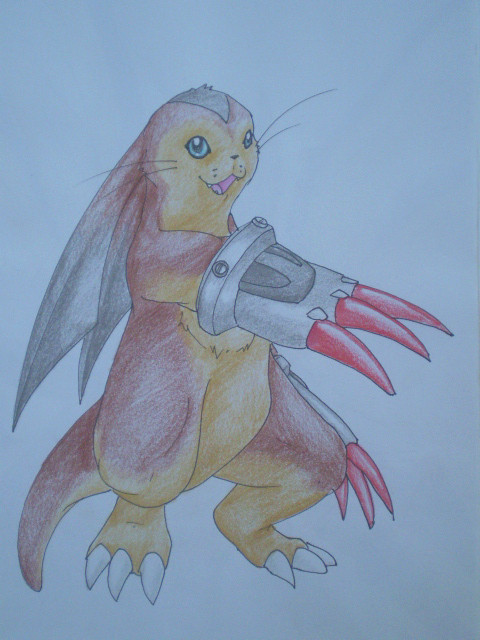 Growlmon, the digivolution of Guilmon!He was meant to be in a different pose, and a lot smaller, but something went a little haywire and he ended up like this.