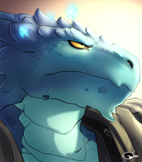 Exams are done so now I turn my attention to entirely self-indulging in art for myself B )Azarekh in all her blue glowing finery!