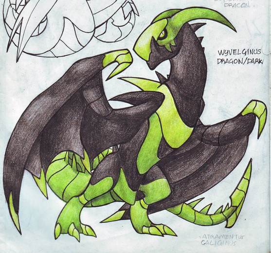 The shading is really interesting - I love how there are subtly different colors all around the green underbelly to give it a scaly and shiny look. The dramatic shading, particularly on the black part, looks very cool and intense, too.