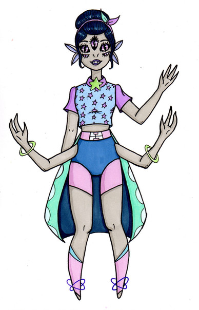 It's punny... I'm just not a pun fan. I do like the look of her though. The four arms definitely look fun.