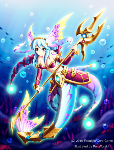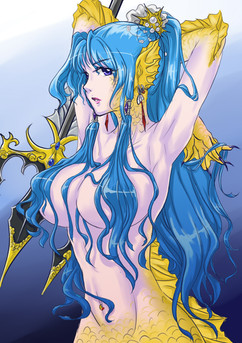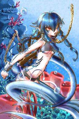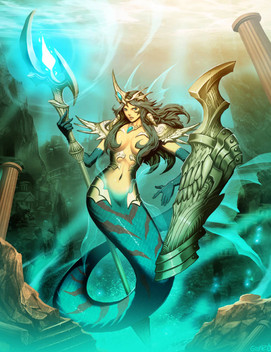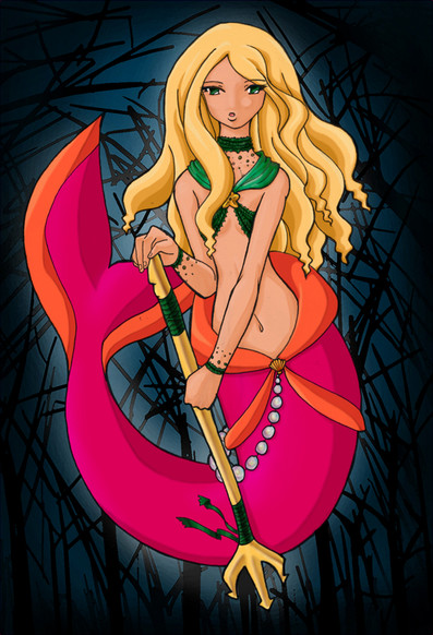 Info: Emili is the Princess of the Western Kingdom of Mer, based deep underwater a few miles off the West coast of Sedna. Her Kingdom, which is one of four known mermaid kingdoms, has been around the longest, and has been allied with the Sednian Kingdom inland for as long as historians can remember. They have defended the kingdom countless times over the centuries from naval attacks, and are one major reason Sedna has never lost a war with continents across the sea. Their combat relies heavily on physical weapons, the most common being two-handed spears that they can hurl through the water as swiftly as a torpedo.