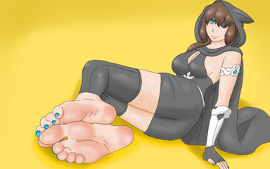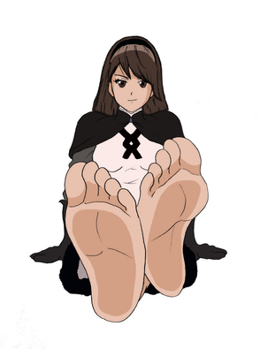 Although she otherwise would hate having them bare, she does have a secret enjoyment of teasing known foot-fetishists with the sight of them. At the first sign of ticklish trouble heading her way, though, they're gone. And so is she, probably.