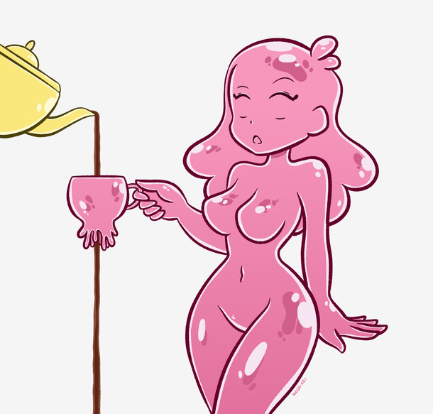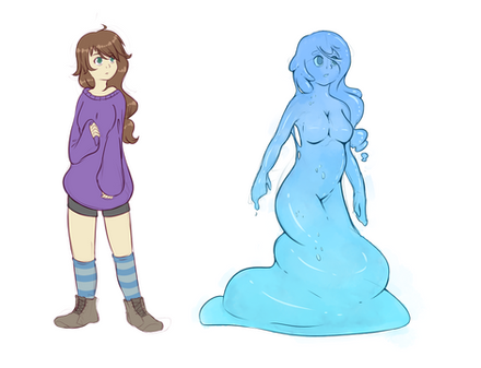 Info: Yuell is a slime girl (shocker!) that inhabits the Blackwoods, often hanging around Foster and his companions. She particularly enjoys the presence of X'uanina, the two sharing ticklish encounters from time to time with the poor alien girl finding herself on the receiving end! Yuell can be quite a mean tickler, but usually lets Nina go once she's too tickled to think... or until she passes out, on particularly mean days. Her body can form into any shape one could imagine, though her favorite thing to do is provoke someone into attacking her, only for their attacking limb to get caught within her whilst she has a field day on them. She can form her flesh to be bristly like brushes or soft and tickly like feathers, making herself her own best tickling tool.