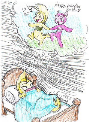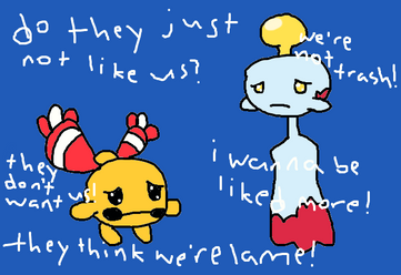 I had to put those there! It's just so cute!! Oh hey, weird question but, in your opinion, is Mew female or male? (I know techinically Mew doesn't have a gender but....)