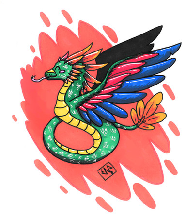 #artfight #coolcolors #drawing #glow #sunset #ãrtfight2019 #quetzalcoatl