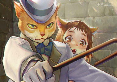 I can't take my eyes off of the characters and follow along the directs the flowers lead me (thus right to the character and his roses). The hair and clothing and even the accessories are highlighted without taking away from the character.