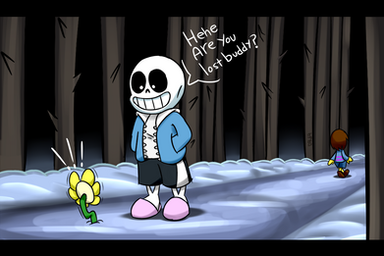 As the tall skeleton marched towards his destination, he happened to spot a lone yellow flower on the path ahead, sprouting from the midst of a snow poff. It was peculiar for such a vibrant flower to be living in Snowdin... but Papyrus shook the thought off. He had a job to do, after all! Setting his thoughts aside, he continued onward, passing the uniquely placed flower without a second glance. That is, until it spoke.