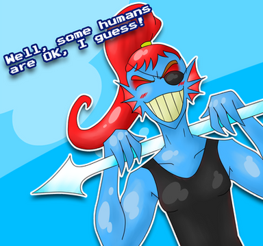 Undersiege Undyne!The things on her torso aren't scars, those are her gills.