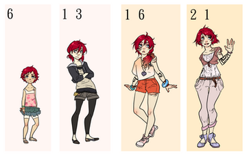 Wow I really love how well developed she is, she's so real and life like, well done but you don't need me to say that, you inspired me to go much in detail with characters more now then I ever had I really like her she's so pretty at age 19 and adorable at age 5 >w<