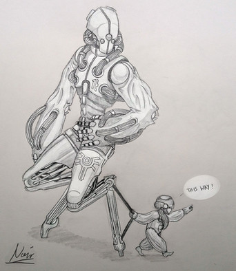 I'm conflicted. On one hand this is super cute, but on the other hand...that robot looks pretty scary. Actually, it kinda reminds me of the geth. 8/