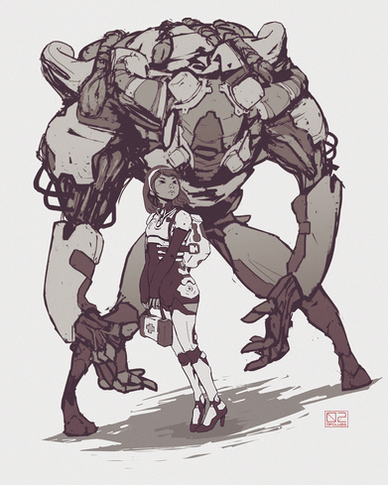 Love the contrast here, in pose, in design, in colors, in expressiveness. It's perfect! And the girl is super cute.
