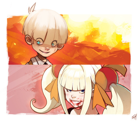 One of my favorite parts is the background color/glow/lighting in connection to the blush on her face - the colors are matched so well that the entire piece seems to glow with that same color, which plays perfectly off her hair and eye colors. The manic facial expression is also very well done- the combination of envy and love does seem like it would produce that flavor of expression.