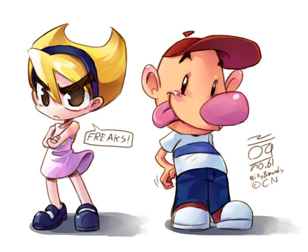 The backgrounds are as good as the siblings as well man. The girl is scaring me. The boy's eyes reminds me of those evil telepathic kids from the horror movie Bart & Lisa wanted to see in an old ep of the Simpsons.