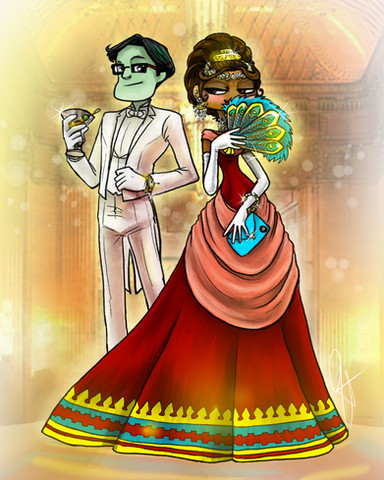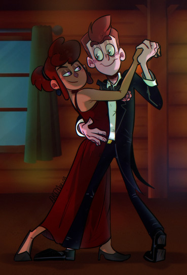 This drawing is based on Dance With Me - a fanfic by Hugh Jidiot on fanfiction.netDesigning Marcy's dress based on its description was fun, and I don't think it looks bad, but I could've definitely given the frills more prominence, especially the ones on the skirt.