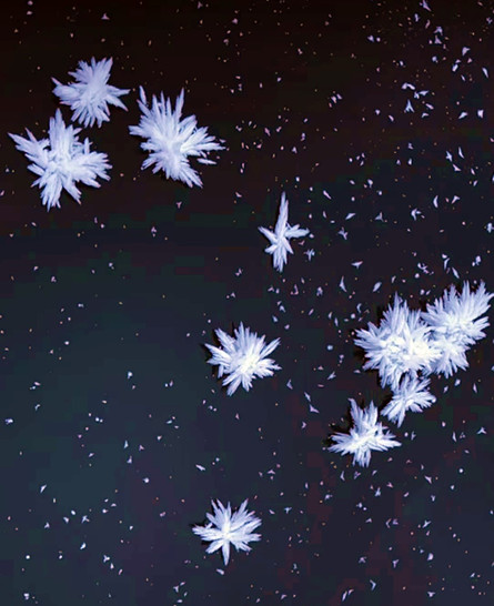 Macro photo of a small crystal formation (ascorbic acid) taken at 20x magnification. Focus stacked with Helicon Focus.